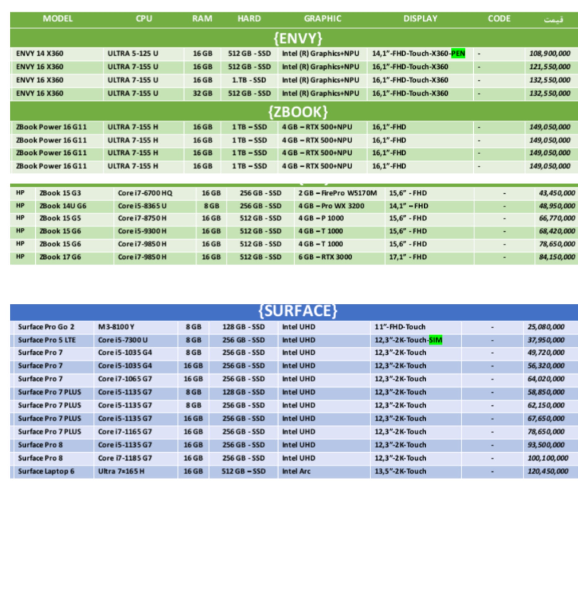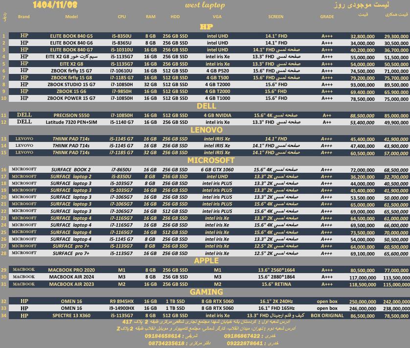 لیست قیمت به تاریخ ۱۴۰۴/۱۱/۸