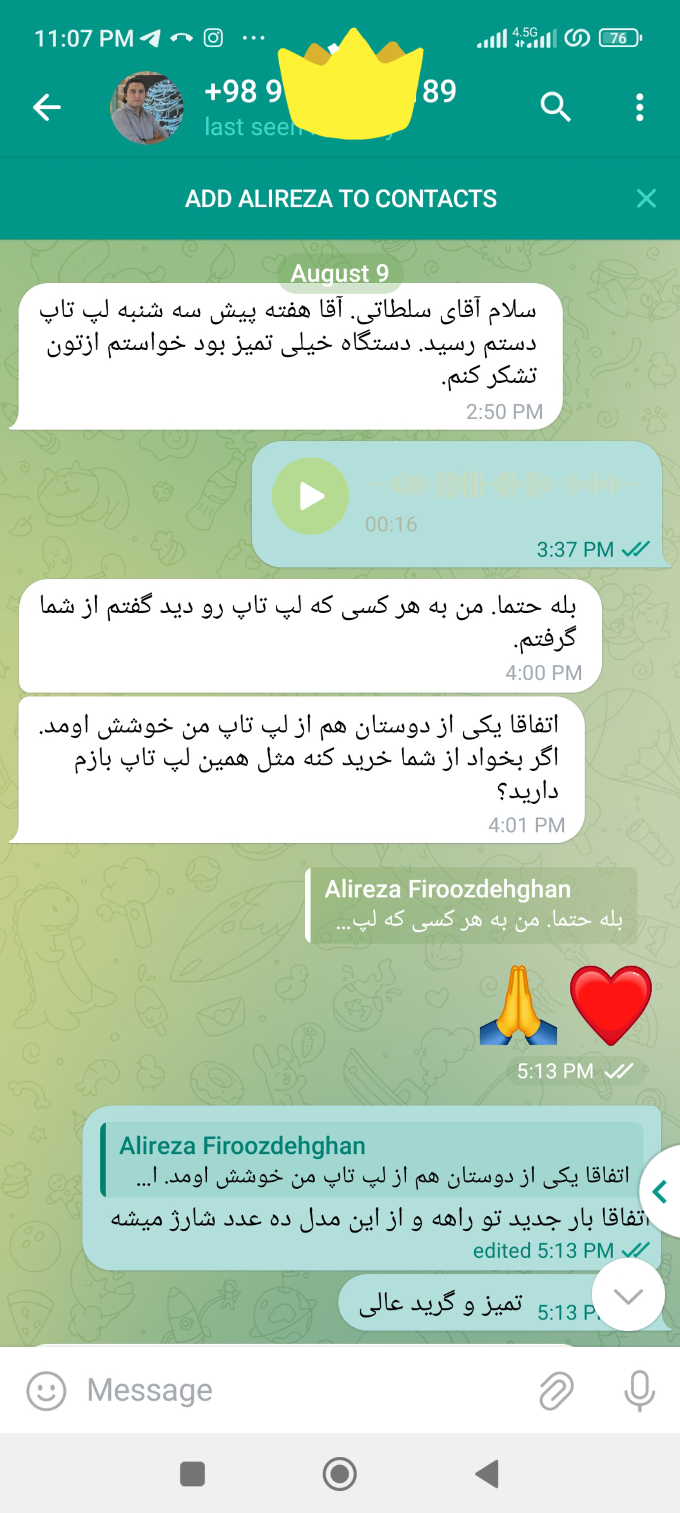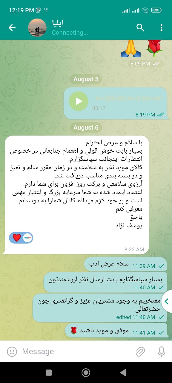 نمونه ای از نظرات مشتریان عزیز بانه گستر در این صفحه درج گردیده است و برای مشاهده موارد بیشتر میتوانید به کانال تلگرام مشتریان بانه گستر بپیوندید